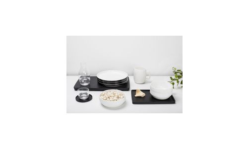 Dankzij de strakke, neutrale vormgeving en de uitgekiende opstaande randen van de Vincent Van Duysenborden en -kommen kan je ontelbaar veel combinaties maken. De geglazuurde binnenzijde in gebroken wit en de witte of zwarte afwerking aan de buitenzijde zorgen daarbij steeds voor een bijzonder contrast.