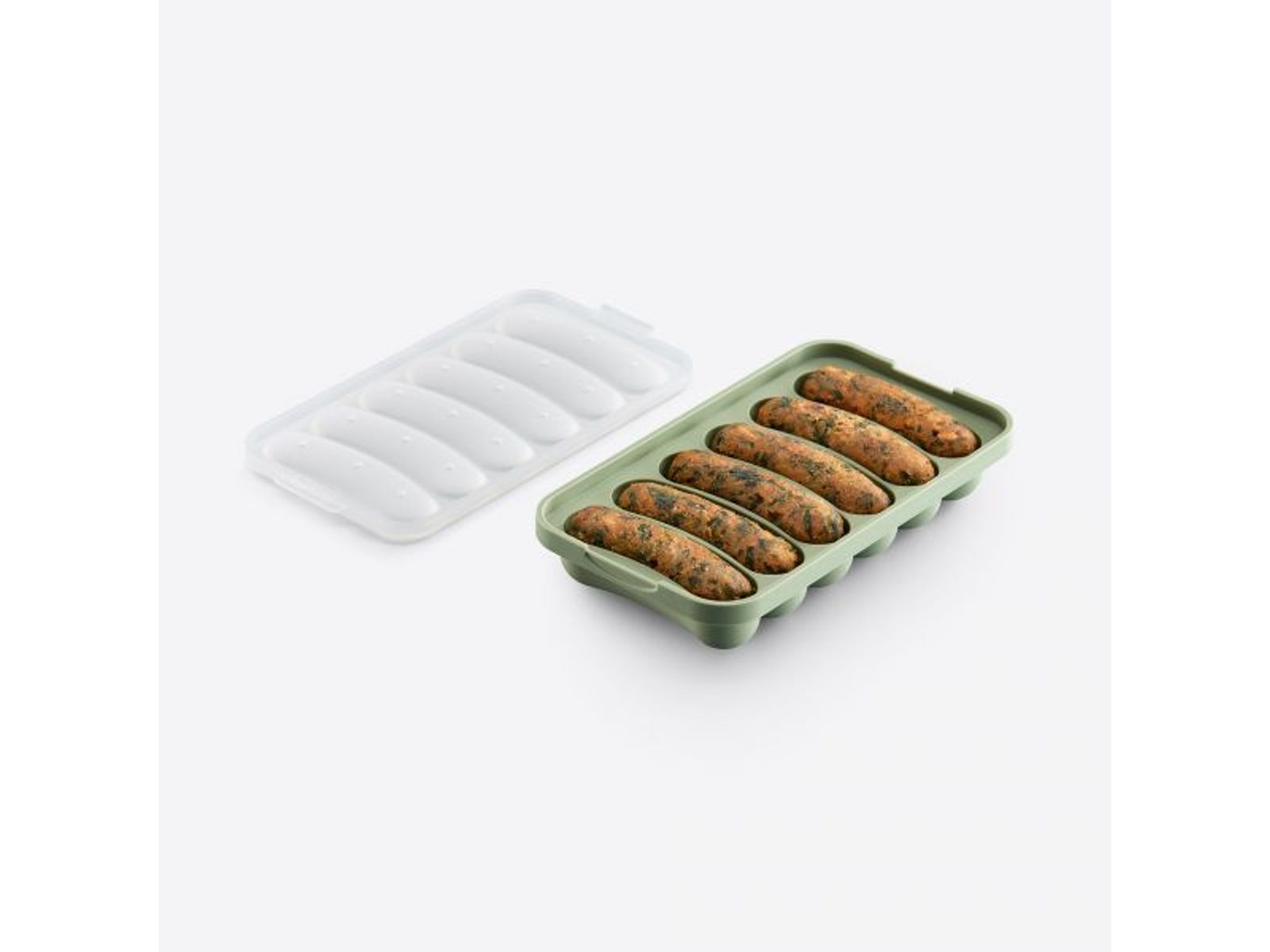 De Veggie Worsten is gemaakt van 100% platina siliconen. Hiermee bereid je gemakkelijk 6 zelfgemaakte worsten in slechts enkele minuten. Kook de worsten in de magnetron om in een oogwenk het perfecte gevoel en de perfecte textuur te krijgen. Deze worstenmaker is ook geschikt voor de oven en stoomkoken.