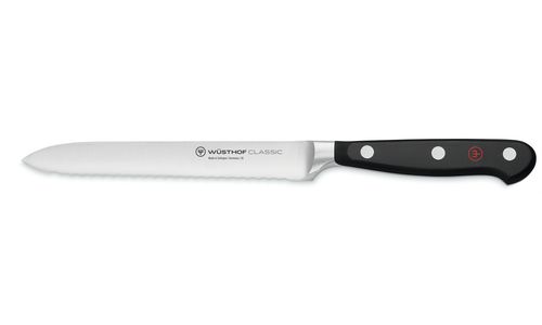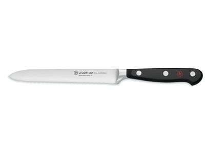De perfecte hulp voor het bereiden van je lunchpakket of bij de brunch: dankzij de fijne kartelrand snijdt dit broodjesmes niet alleen schoon en zonder te scheuren door broodjes, maar is ook geschikt voor groenten (zoals stevige tomaten), fruit of droge worst. Dit maakt het tot een integraal onderdeel van de bereiding van broodjes en op de brunchtafel, idealiter naast ons kaasmes.