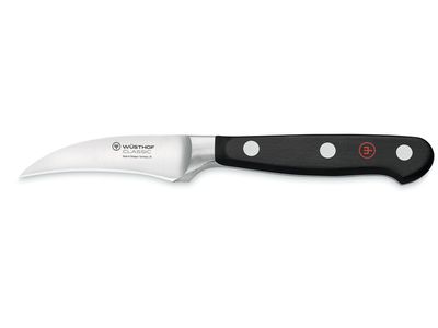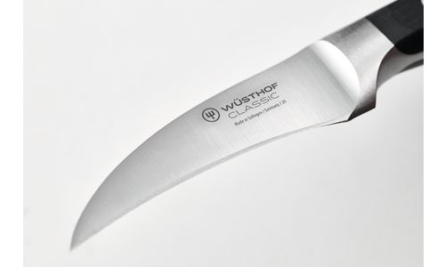 Bijzonder nuttig voor het schillen en schoonmaken van ronde groenten en fruit: dit kleine, handige schilmesje - ook wel bekend als toerneermes - met het korte, gebogen lemmet in vogelbekvorm, kunnen producten gemakkelijk snel zoals aardappelen of appels, worden geschild, met behoud van de waardevolle vitaminen die zich direct onder de schil bevinden. De gladde rand van het schilmes / toerneermes zorgt voor zeer precieze sneden, zodat het de ideale hulp is om groenten en fruit uit te hollen en te decoreren.