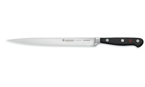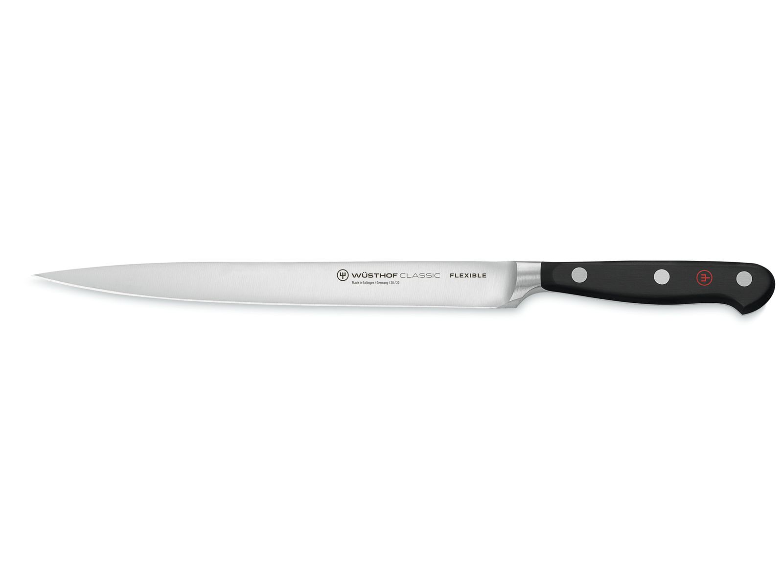 Voor gebruik voor vis, vlees en fruit: terwijl uitbeenmessen of hakken meer geschikt zijn voor grovere taken, vooral voor vlees, is het fileermes met het flexibele lemmet bijzonder geschikt voor flinterdun fileren. Het precisie-snijden van vlees, het losmaken van de visfilet van de huid of het schillen van vruchten - dat zijn de bijzondere talenten van het fileermes.