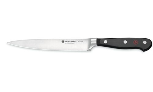 Het ideale gereedschap voor het bereiden en snijden van zalm: dit zalmmes, met flexibel en uiterst scherp lemmet, glijdt gemakkelijk door de vis en is bijzonder geschikt voor zalm omdat je er ook flinterdunne plakjes mee kunt snijden. De golfjes - lichte holtes aan de rand van het lemmet - zorgen voor kleine luchtkussentjes die voorkomen dat de vis aan het mes blijft plakken.