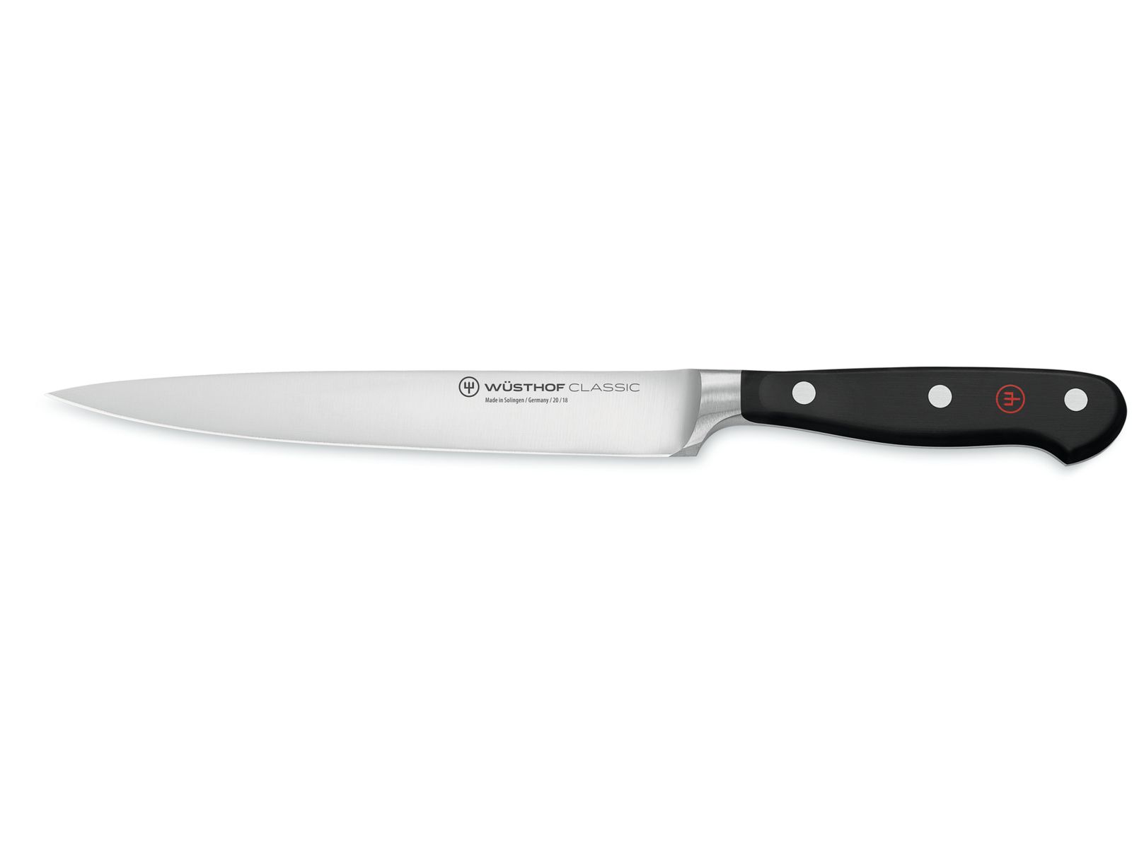 Voor gebruik voor vis, vlees en fruit: terwijl uitbeenmessen of hakken meer geschikt zijn voor grovere taken, vooral voor vlees, is het fileermes met het flexibele lemmet bijzonder geschikt voor flinterdun fileren. Het precisie-snijden van vlees, het losmaken van de visfilet van de huid of het schillen van vruchten - dat zijn de bijzondere talenten van het fileermes.