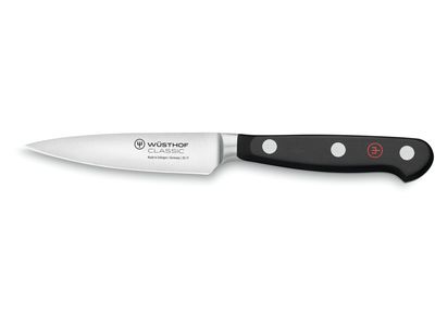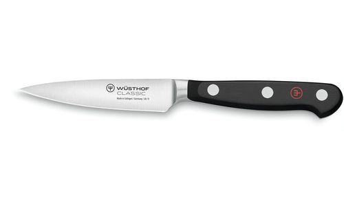 Klein, veelzijdig mesje met slank lemmet en gladde rand: dit groentemes is gemaakt voor het snijden van uien en kruiden en is ook handig voor het hakken, schoonmaken en decoreren van fruit en groenten. Met het scherpe, puntige lemmet werkt dit groentemes ook goed als lardeermes.