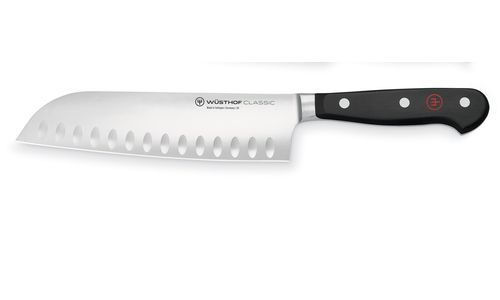 Styled after the Japanese Cook´s Knife this blade is just right for preparing not only fine Asian but also Western cuisine. With hollow edge.