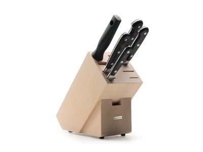 The handy knife block provides protection for your blades as well as a visual compliment to your kitchen decor.