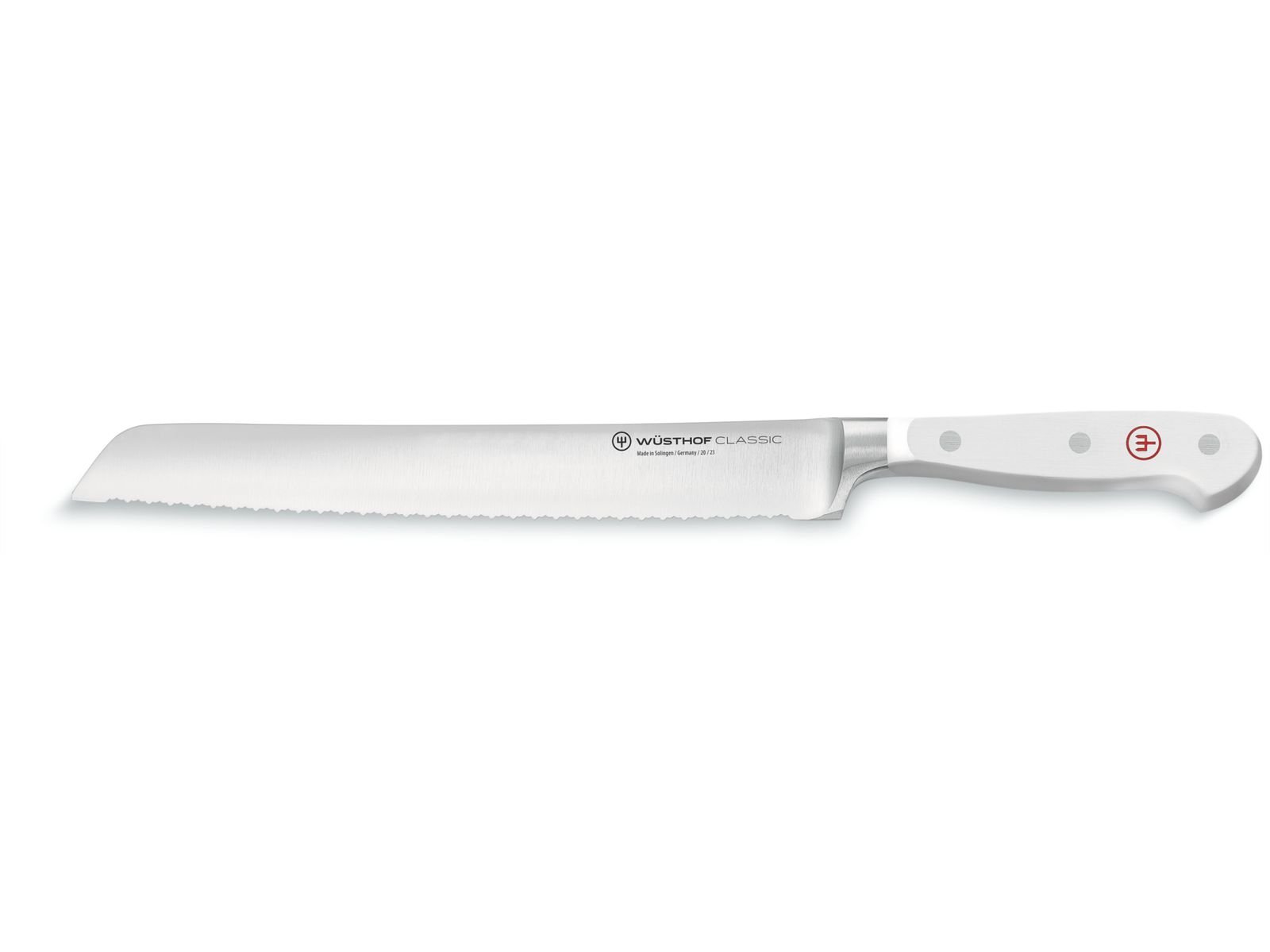 De precieze, dubbele kartelrand van WÜSTHOF maakt met dit broodmes duidelijk anders: in tegenstelling tot een enkel kartelrand heeft dit mes kartels binnen kartels, wat betekent dat het langer scherp blijft, er minder druk nodig is en geschikt is voor zeer precieze, gladde sneden. Brood met een harde korst wordt bij het snijden met dit dubbel gekartelde lemmet niet platgedrukt, terwijl brood met een zachte korst ook zuiver wordt gesneden, zonder dat het delicate oppervlak wordt gescheurd.