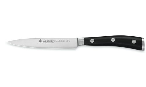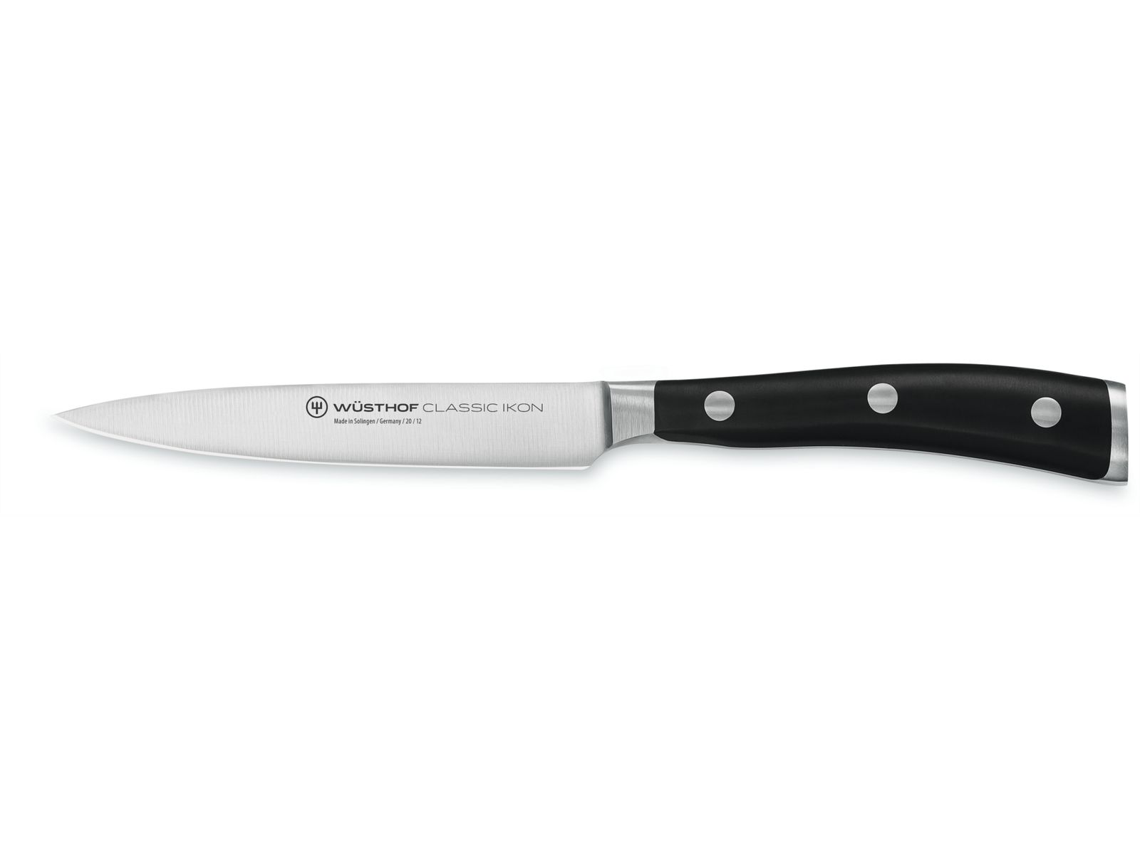 Klein, veelzijdig mesje met slank lemmet en gladde rand: dit groentemes is gemaakt voor het snijden van uien en kruiden en is ook handig voor het hakken, schoonmaken en decoreren van fruit en groenten. Met het scherpe, puntige lemmet werkt dit groentemes ook goed als lardeermes.