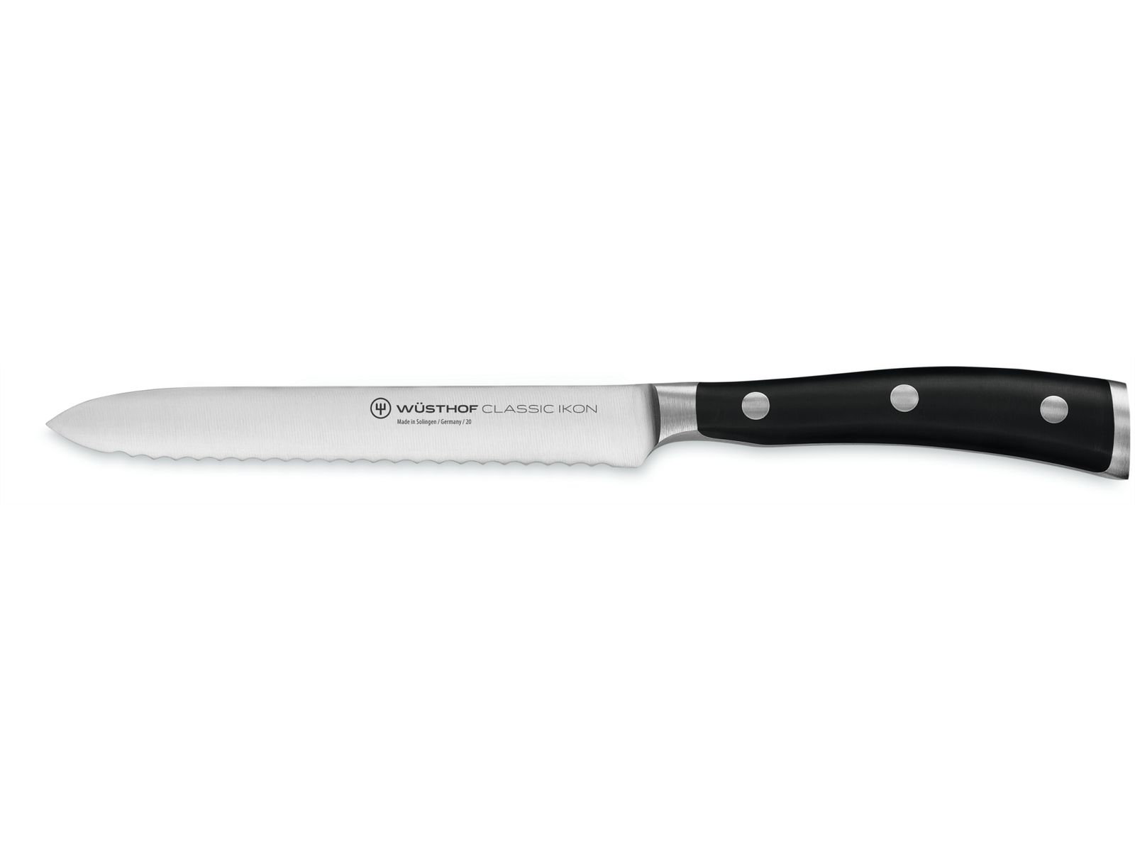 De perfecte hulp voor het bereiden van je lunchpakket of bij de brunch: dankzij de fijne kartelrand snijdt dit broodjesmes niet alleen schoon en zonder te scheuren door broodjes, maar is ook geschikt voor groenten (zoals stevige tomaten), fruit of droge worst. Dit maakt het tot een integraal onderdeel van de bereiding van broodjes en op de brunchtafel, idealiter naast ons kaasmes.