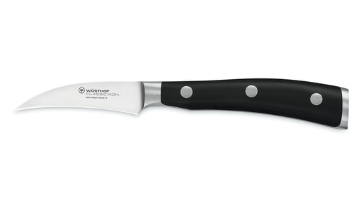 Bijzonder nuttig voor het schillen en schoonmaken van ronde groenten en fruit: dit kleine, handige schilmesje - ook wel bekend als toerneermes - met het korte, gebogen lemmet in vogelbekvorm, kunnen producten gemakkelijk snel zoals aardappelen of appels, worden geschild, met behoud van de waardevolle vitaminen die zich direct onder de schil bevinden. De gladde rand van het schilmes / toerneermes zorgt voor zeer precieze sneden, zodat het de ideale hulp is om groenten en fruit uit te hollen en te decoreren.