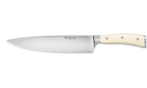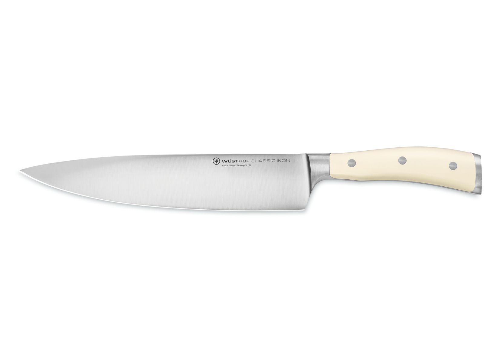 De allrounder: voor het fijn maken, hakken of snijden van vlees, vis, fruit en groenten. Dit koksmes is een actieve hulp bij veel keukentaken, maakt het bereiden van gerechten tot een plezier en is onderdeel van de basisuitrusting van elke professionele en hobbykok. De halfkrop, de verbinding van handvat en lemmet, geeft minder gewicht aan het mes, waardoor het gemakkelijker te hanteren is. Daardoor kan het hele lemmet ook gemakkelijker worden geslepen.