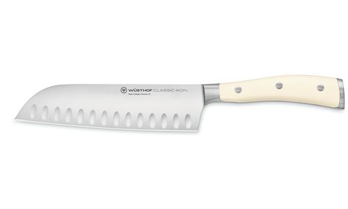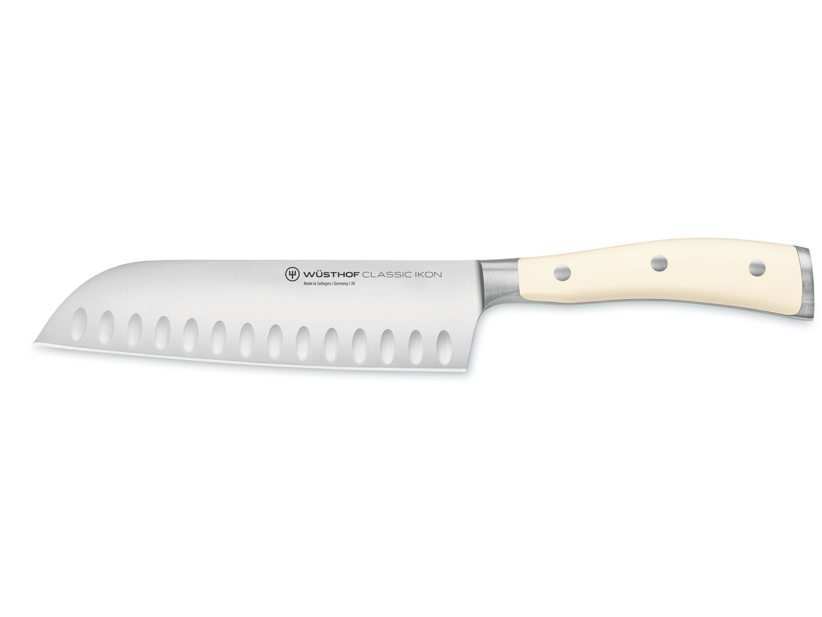 Wat een koksmes is voor Europese keukens, is de santoku voor Japan en heel Azië: zo veelzijdig in vorm, gewicht en rand dat het gebruikt kan worden voor het fijn maken en hakken van kruiden, groenten en fruit, maar ook voor het bereiden van vis en vlees. Het scherpe lemmet van een Santoku maakt alles mogelijk, van gewone tot flinterdunne sneden - het is daarom een noodzakelijk gereedschap in keukens over de hele wereld.