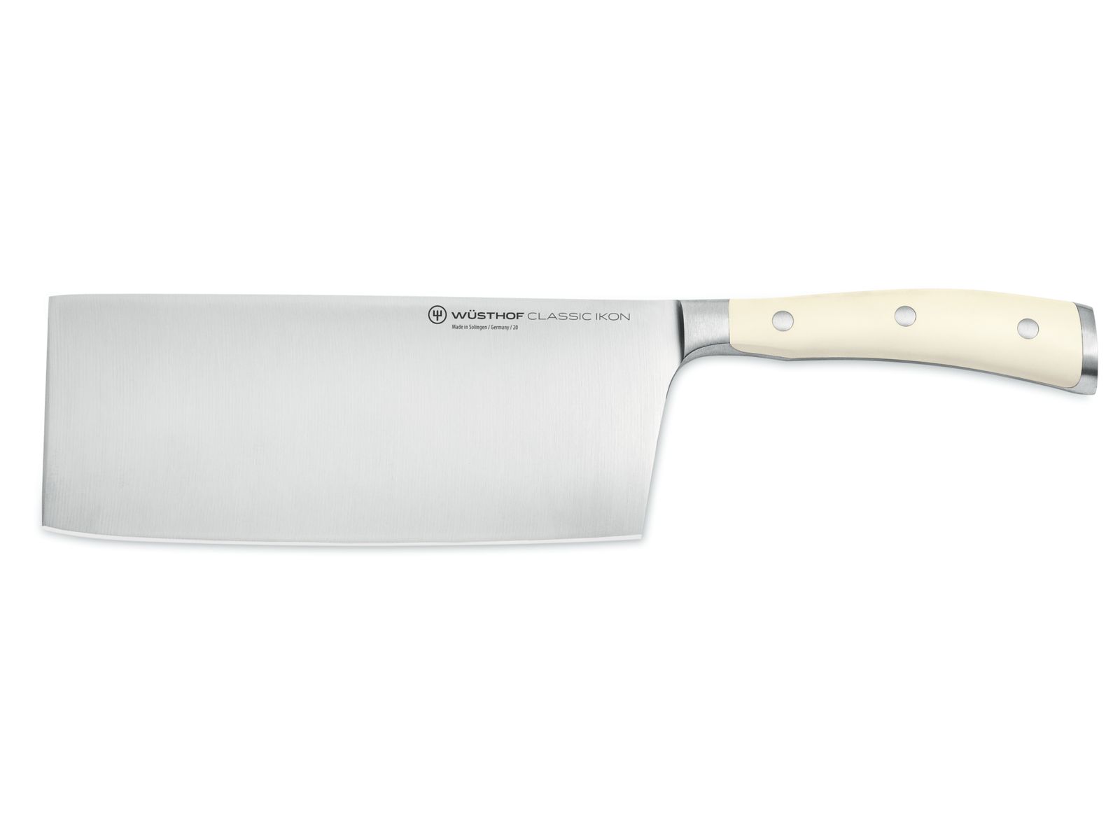 Het Chinese koksmes, gesmeed uit één stuk WÜSTHOF-staal, met precisie en veel kracht in de hand, hakt in enkele seconden een kool of snijdt flinterdunne plakjes van een tomaat, terwijl het brede mes ook ideaal is voor het opscheppen van voorverpakte ingrediënten en het overbrengen ervan naar de pan. Het fijne snijvlak is uitzonderlijk scherp, maar moet niet worden gebruikt voor botten of zeer harde vruchten (zoals kokosnoten); in plaats daarvan raden we een Europese hak of slagersmes aan.
