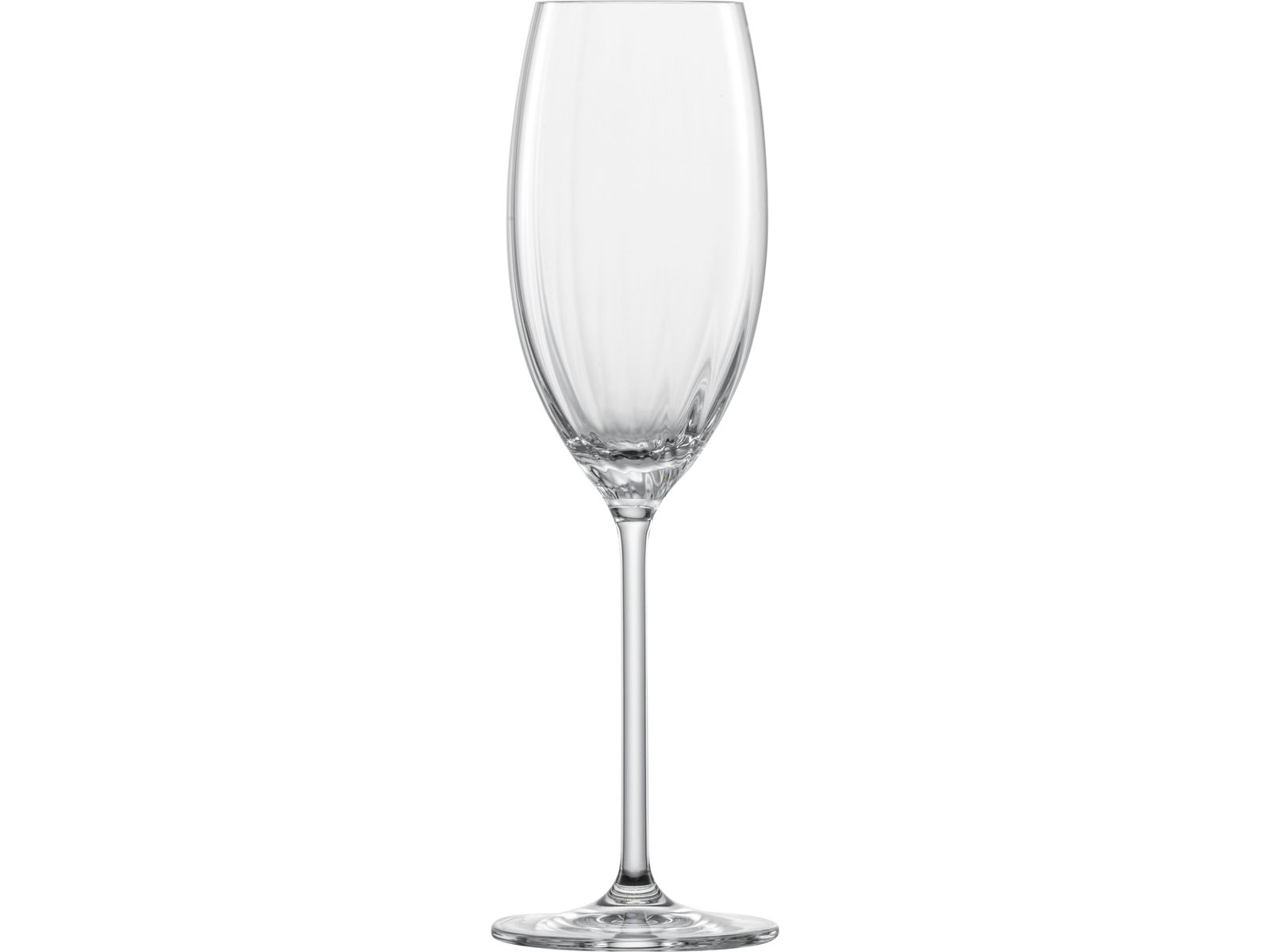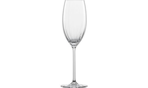 Het champagneglas uit de Prizma serie van Zwiesel Glas zorgt voor een sprankelende genotservaring. De gebogen, ronde vorm geeft het een bijzonder stijlvolle uitstraling. De mooie perlage ontstaat door het mousseerpunt in de bodem van het glas.