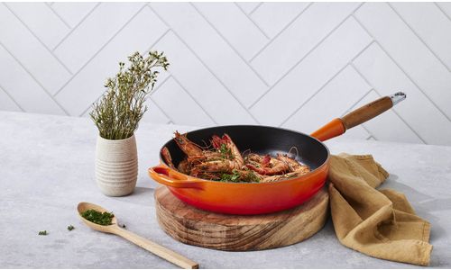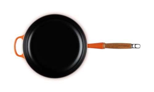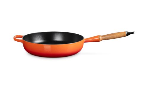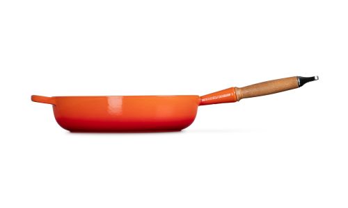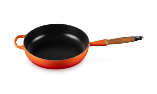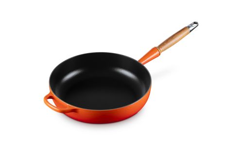 Onze gietijzeren Signature Hapjespan is perfect voor het bereiden van overheerlijke gerechten en maakt bakken en sauteren een waar genot. Het strakke, moderne uiterlijk, met hogere zijwanden voor het koken van vloeistoffen, een koelblijvend houten handvat en een grote hulpgreep om de pan eenvoudig vast te pakken en te verplaatsen. U kunt deze mooie pan op elke warmtebron gebruiken, behalve in de oven. U kunt hem beter niet in de vaatwasser doen als u het handvat wilt beschermen.