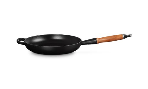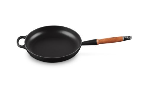 De Signature Koekenpan is een uitstekende keuze voor allerlei dagelijkse kooktechnieken, waaronder bruinbakken en aanbraden. Hij is gemaakt van ons iconische gietijzer, verdeelt de warmte gelijkmatig en zorgt ervoor dat de buitenkant van uw eten snel dichtschroeit. Het resultaat? Het houdt vocht, voedingsstoffen en smaak vast voor onvergetelijke en verrukkelijke gerechten. De ergonomische hulpgreep zorgt voor een betere grip, terwijl de hittevrije houten handgreep opnieuw is ontworpen voor extra comfort. Bovendien kan de pan worden opgehangen met behulp van de geïntegreerde haak.