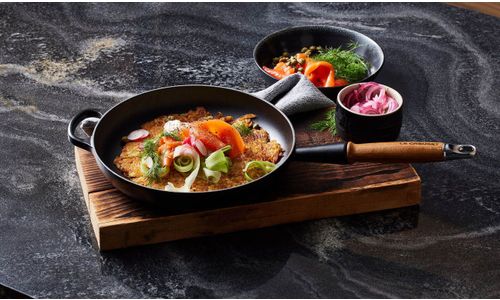 Heerlijke gerechten: het gietijzer houdt de warmte vast, zodat het eten gelijkmatig kan bakken en bruinen. Uw overheerlijke creaties blijven bovendien langer warm aan tafel.