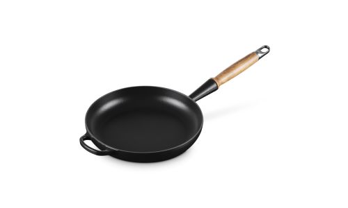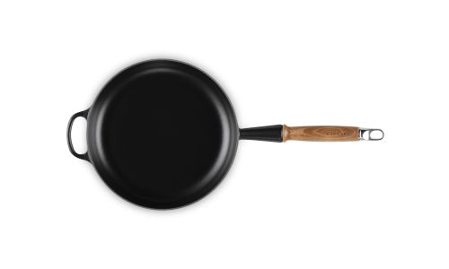 De Signature Koekenpan is een uitstekende keuze voor allerlei dagelijkse kooktechnieken, waaronder bruinbakken en aanbraden. Hij is gemaakt van ons iconische gietijzer, verdeelt de warmte gelijkmatig en zorgt ervoor dat de buitenkant van uw eten snel dichtschroeit. Het resultaat? Het houdt vocht, voedingsstoffen en smaak vast voor onvergetelijke en verrukkelijke gerechten. De ergonomische hulpgreep zorgt voor een betere grip, terwijl de hittevrije houten handgreep opnieuw is ontworpen voor extra comfort. Bovendien kan de pan worden opgehangen met behulp van de geïntegreerde haak.
