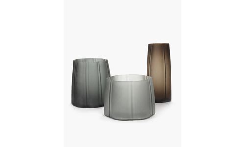Deze unieke vaas is mondgeblazen en komt in een strakke grijze kleur. De vaas bevat zes subtiele plooiingen wat voor een artistiek effect zorgt. Deze vaas behoort tot de Shapes collectie van Piet Boon en heeft drie designs.