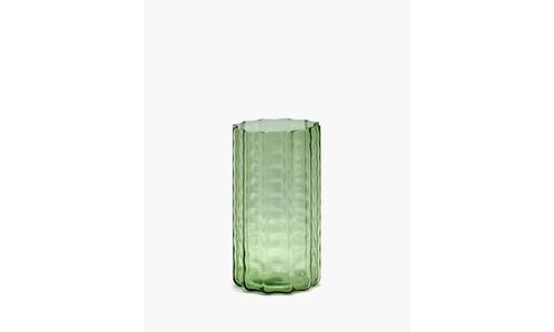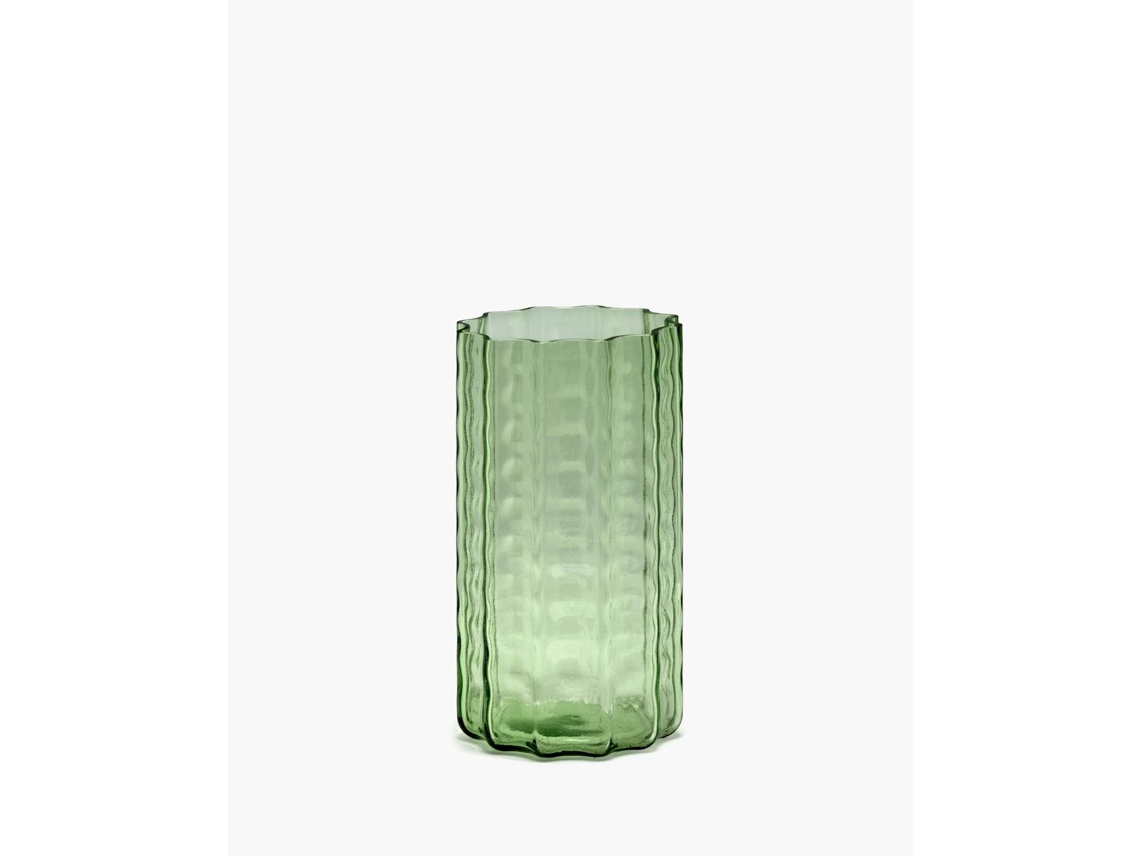 De vorm van deze geblazen vaas is geïnspireerd op de imposante glaspartijen van het MAS, die door Ruben Deriemaker als meesterlijk worden beschouwd. Naast zijn unieke ontwerp heeft de vaas een subtiele kleur, wat hem tot een prachtig decoratief object maakt voor een kleine bos bloemen.