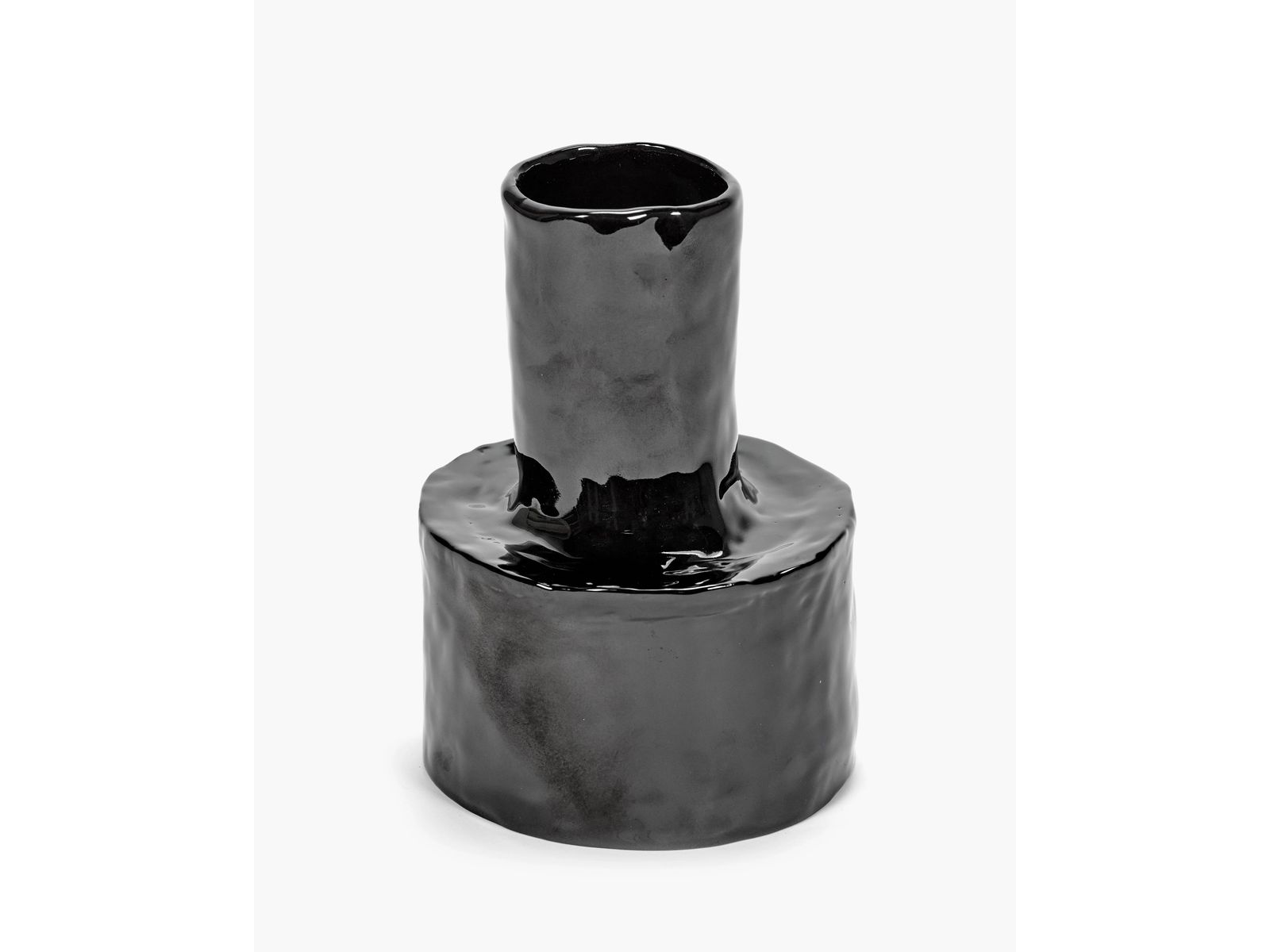 Deze zwarte Héléna vazen zijn gemaakt met een ambachtelijk oog voor detail, waardoor ze een ongewone cilindervorm hebben gekregen. Hun eigenzinnigheid maakt ze decoratief met of zonder bloemen en voegt karakter toe aan elke ruimte.