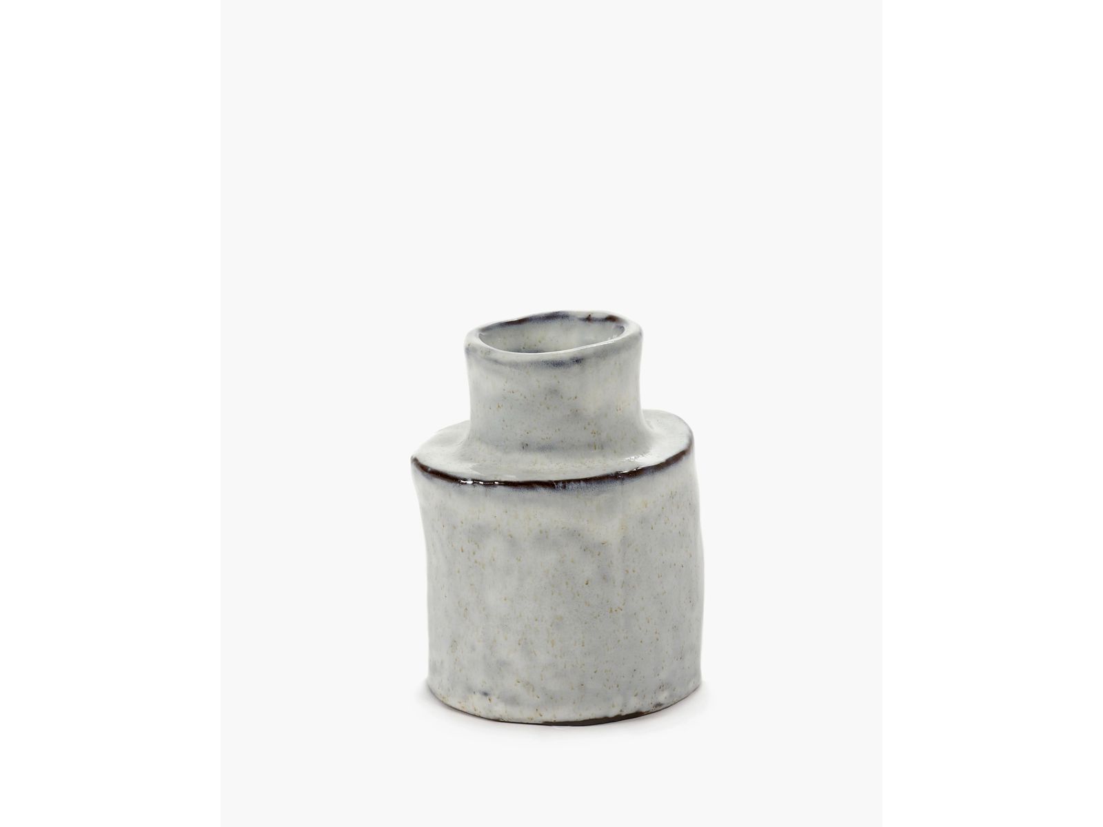 Deze gebroken witte Héléna vaasjes zijn eenvoudig van vorm, maar onregelmatig in hun cilindrische vorm. Dit geeft ze een handgemaakt karakter en maakt ze decoratief, zowel met als zonder bloemen.