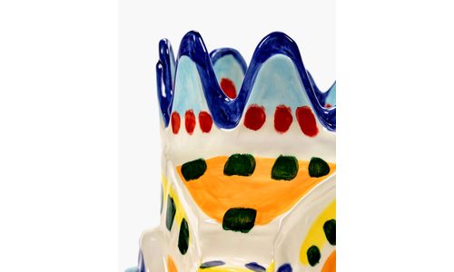 Designer Bisignano heeft met deze Sicilië vazen een eigen, lichtjes surrealistische draai gegeven aan eeuwenoude legendes. Deze handgeschilderde vazen zijn eerlijk, expressief, opvallend, vrolijk en kleurrijk. kleuren en de passie van Bisignano’s geboorteplek.