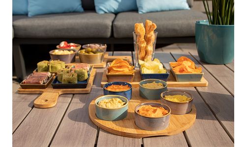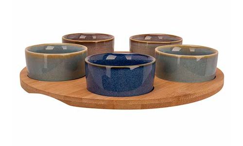 Serveerplank D25x1cm Bamboe + 5 Bowls Multi-kleur D7x3cm