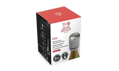 Behoud de sprankeling en alle smaken van uw mousserende wijnen dankzij de Line-dop van Peugeot met het beveiligde afsluitsysteem.
