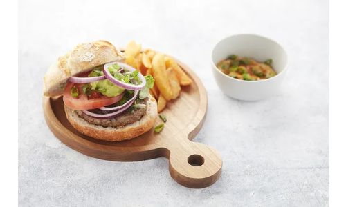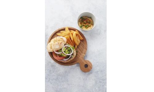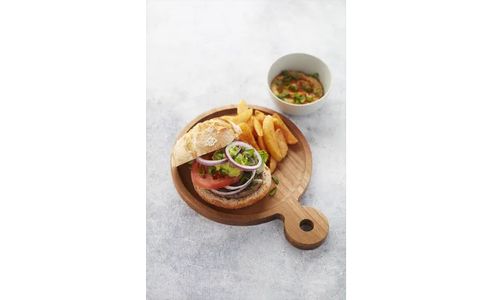 Hamburgerplank uit acaciahout met handvat rond ø 20cm FSC®