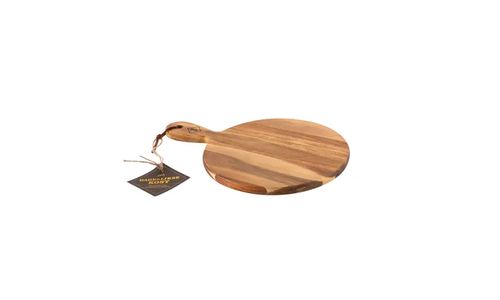 Ronde serveerplank met handvat uit acaciahout met koord 35x24.5x1.5cm