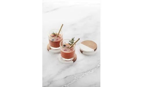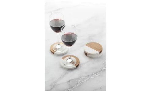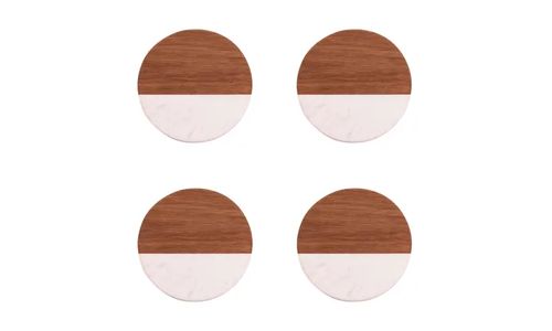 Set van 4 glasonderzetters uit marmer/acaciahout ø 10cm FSC®