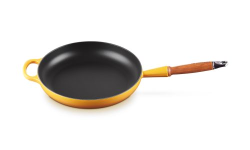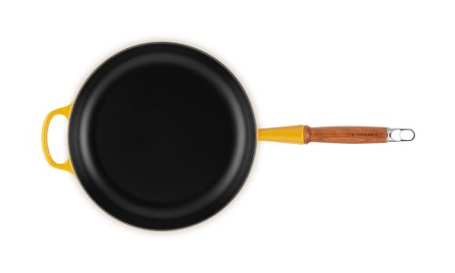 De Signature Koekenpan is een uitstekende keuze voor allerlei dagelijkse kooktechnieken, waaronder bruinbakken en aanbraden. Hij is gemaakt van ons iconische gietijzer, verdeelt de warmte gelijkmatig en zorgt ervoor dat de buitenkant van uw eten snel dichtschroeit. Het resultaat? Het houdt vocht, voedingsstoffen en smaak vast voor onvergetelijke en verrukkelijke gerechten. De ergonomische hulpgreep zorgt voor een betere grip, terwijl de hittevrije houten handgreep opnieuw is ontworpen voor extra comfort. Bovendien kan de pan worden opgehangen met behulp van de geïntegreerde haak.