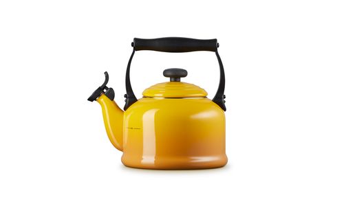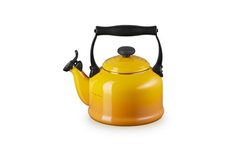 Introduceer traditionele stijl in uw keuken met deze klassieke ketel die fluit wanneer uw water klaar is. Een extra sterke bodem die geschikt is voor inductie zorgt ervoor dat uw water snel opwarmt en dankzij de ergonomische, hittebestendige handgreep kunt u gemakkelijk schenken. Hij is gemaakt van geëmailleerd staal en geeft uw huis een levendig kleurtje.