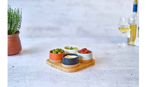 Dela Aperoset 5pcs - Serveerplank 22x22 Cm + 4x Bowl D9,5x5,5cm