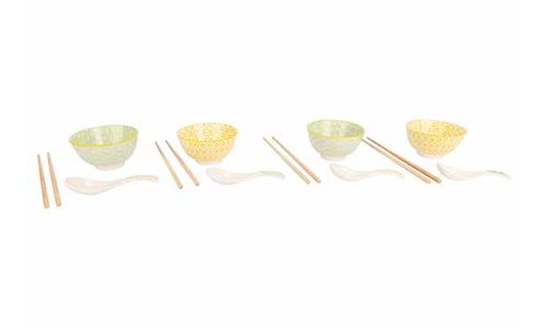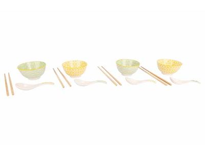 Asian Set 12pcs - 4 Bowls D11,5cm Incl. Chopsticks - 4 Rijstlepels