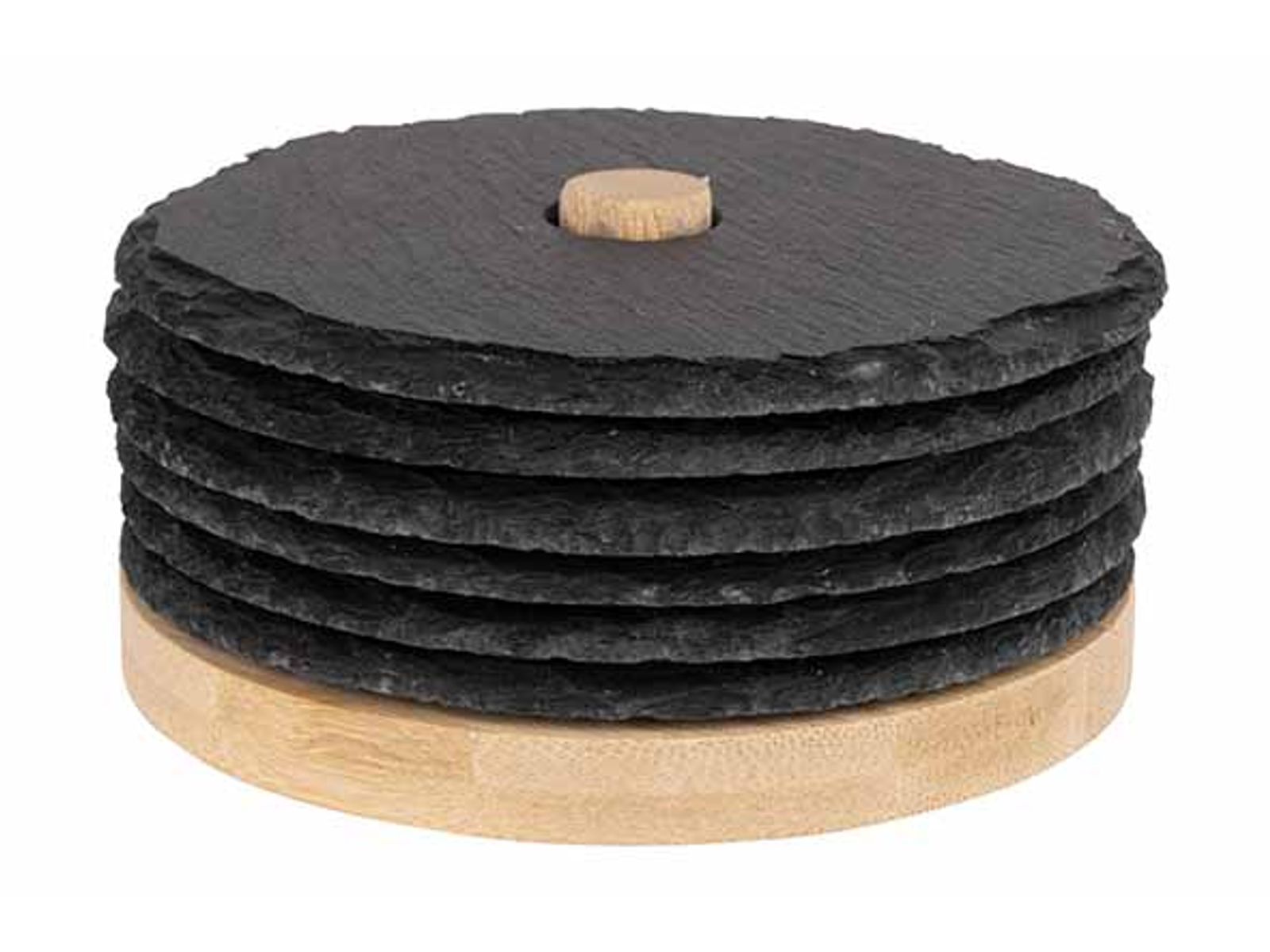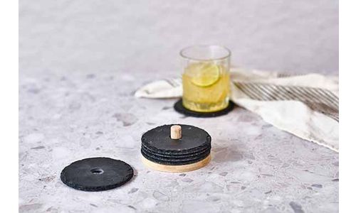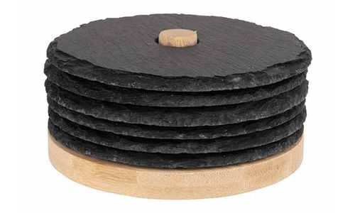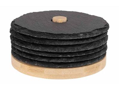 Glasonderzetter Leisteen Set6 D10cm Op Houder