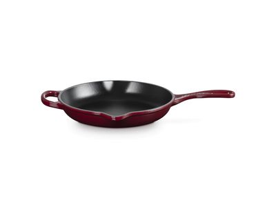 Zowel chef-koks als thuiskoks zweren bij onze karakteristieke skillet. Zijn matzwart geëmailleerde binnenkant brengt karamelliseren naar heerlijke ongekende hoogten. Deze keukenheld kan worden gebruikt op de kookplaat, onder de grill of in de oven, waardoor het een veelzijdig product is om mee te braden en bruin en krokant te bakken.