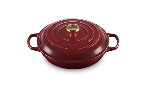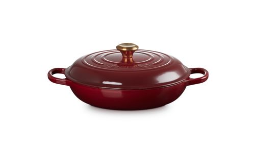 Onze gietijzeren producten zijn gemaakt in onze originele Franse gieterij en zijn een culinaire legende. Deze ondiepe stoofpan vormt daar geen uitzondering op. De grote platte vorm en de lage randen maken hem perfect om vlees en groenten te bruinen, stoofpotten te laten sudderen, te roerbakken en te bakken. Karamelliseren krijgt een extra dimensie, waardoor elke hap naar meer smaakt.