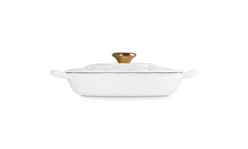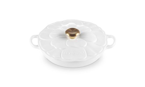 Geïnspireerd door de Franse Anemone-bloem, toont het realistische en delicate bloemsemblaadjesreliëf op het deksel van deze veelzijdige Campagnard ons uitzonderlijke vakmanschap. Lusgrepen zorgen voor een veilige grip, terwijl de Signature knop in het midden van de bloemblaadjes niet alleen een stijlvol tintje is, maar daarnaast ook ovenbestendig tot 260°C.