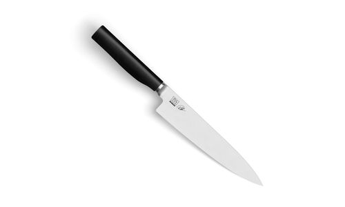 Het gepolijste handvat is ergonomisch gevormd en door de symmetrische uitlijning geschikt voor zowel links- als rechtshandige gebruikers. Hij ligt comfortabel in de hand en biedt een veilige, comfortabele grip tijdens het werken. De perfecte balans tussen handvat en lemmet maakt het snijden bijzonder soepel. Het handvat is gemaakt van gepolijst POM-kunststof en is waterbestendig, hygiënisch en gemakkelijk te onderhouden. Het ‘bull in the kitchen’-merk van Tim Mälzer siert het uiteinde van de handgreep en voegt een verfijnd hoogtepunt toe.