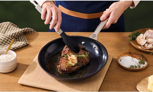 De Essential Non-Stick Ceramic koekenpan is een vertrouwde kookpartner voor alles, van aanbraden tot bruinen en meer. Met een zware aluminium kern en geavanceerde keramische coating, die is gemaakt zonder PFAS, verdeelt en behoudt het uitstekend warmte, geeft het gemakkelijk voedsel af - met weinig tot geen toegevoegde olie of vet - en veegt het snel schoon.