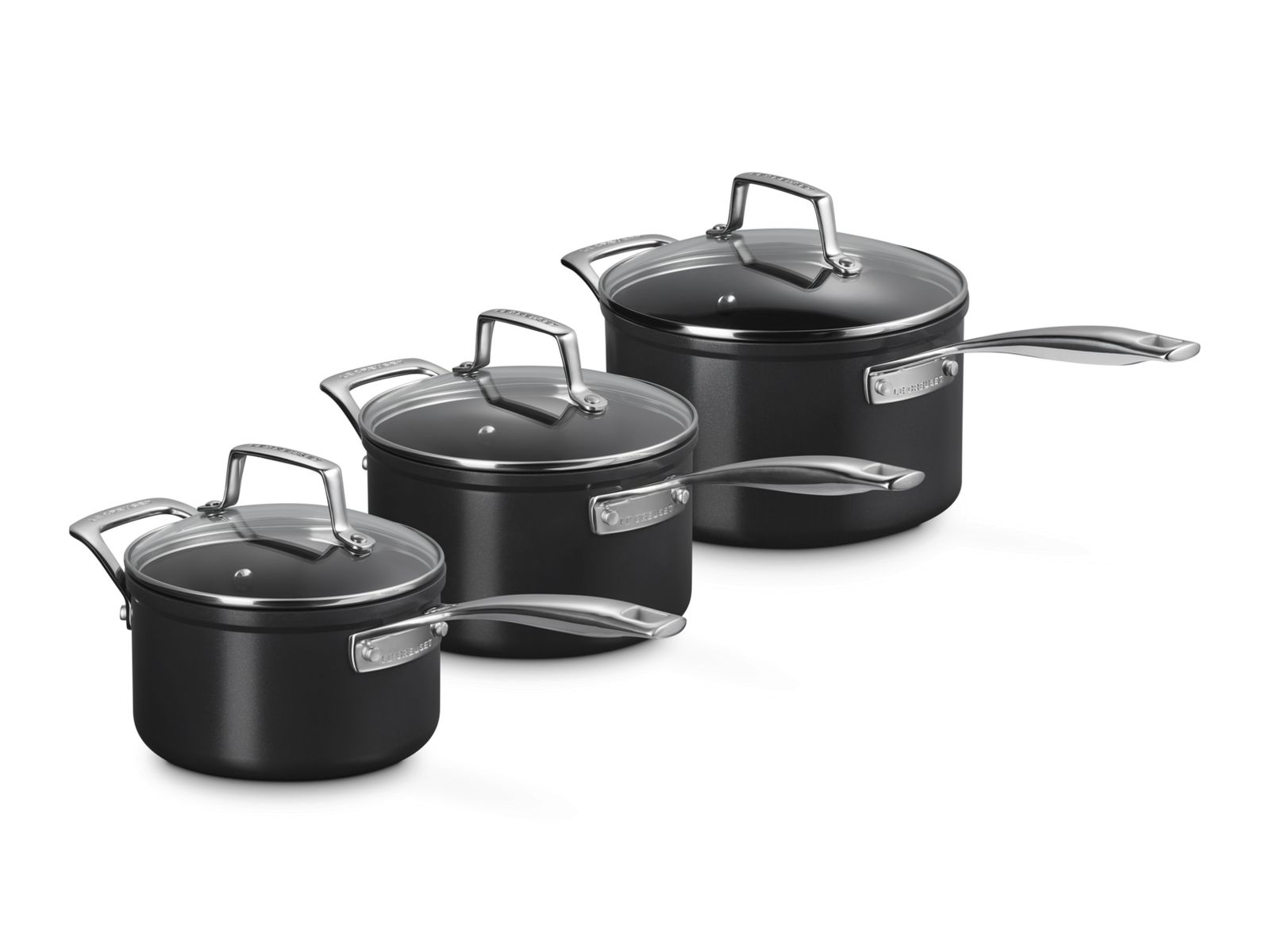 De Essential Non-Stick Ceramic 3-delige steelpanset bevat een vertrouwd trio van kookgezellen. Met onze geavanceerde keramische anti-aanbaklaag, gemaakt zonder PFAS, zijn deze steelpannen de ideale keuze voor ingrediënten die vaak blijven plakken en recepten zoals pap. De set bestaat uit steelpannen met glazen deksels van 16, 18 en 20 cm.
