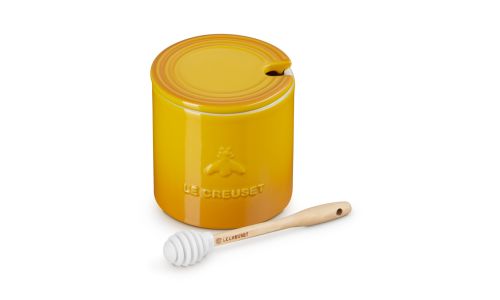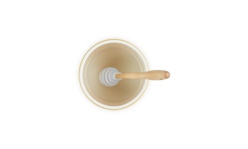 De aardewerk honingpot met siliconen honingdipper maakt het gemakkelijk om een vleugje natuurlijke zoetheid in de buurt te houden. Of je nu een vleugje honing toevoegt aan een recept of een kopje thee zoet, deze pan is de ideale maat voor gebruik op het werkblad. De meegeleverde dipper maakt druppelvrij gebruik mogelijk.