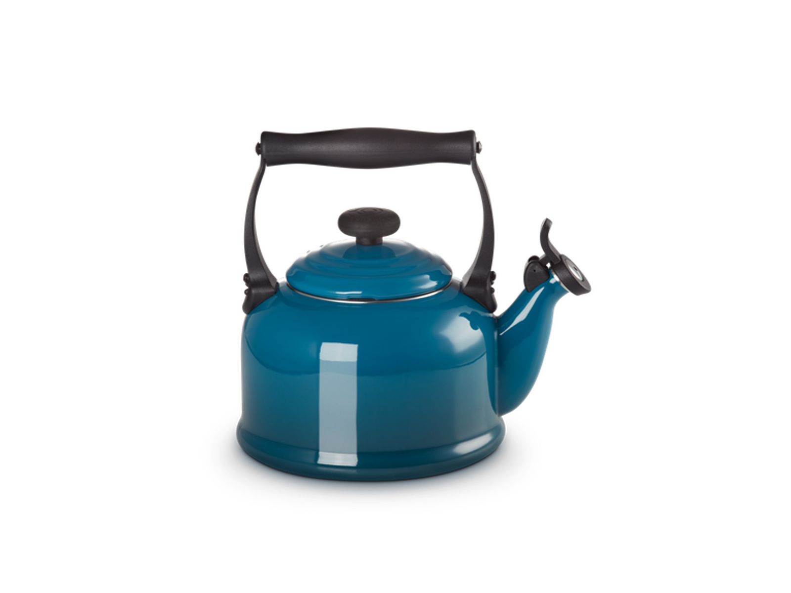 Introduceer traditionele stijl in uw keuken met deze klassieke ketel die fluit wanneer uw water klaar is. Een extra sterke bodem die geschikt is voor inductie zorgt ervoor dat uw water snel opwarmt en dankzij de ergonomische, hittebestendige handgreep kunt u gemakkelijk schenken. Hij is gemaakt van geëmailleerd staal en geeft uw huis een levendig kleurtje.