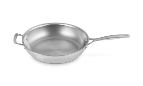 Bereik perfect bakken, dichtschroeien en bruinen met onze 3-laagse roestvrijstalen stoofpan. Het verwarmt snel en gelijkmatig, waardoor u geweldige zeelieden en gekarameliseerde resultaten krijgt. Met een helperhandgreep is het gemakkelijk om van het fornuis naar de oven en naar de tafel te gaan.