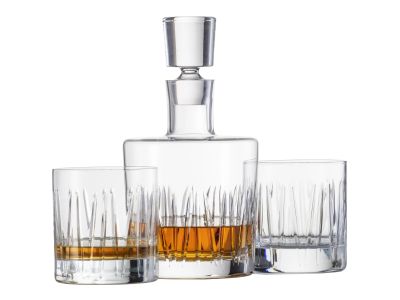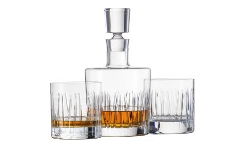 De Whisky karaf met 2 glazen uit de Basic Bar Motion collectie van Schott Zwiesel en Charles Schumann heeft een modern, taps toelopend uiterlijk en is stevig en zeer stabiel. De glazen hebben een optimaal drinkcomfort. De legendarische barman en auteur van Schumann’s Bar in München, Charles Schumann heeft in samenwerking met Schott Zwiesel een collectie barglazen en karaffen ontworpen met klassieke vormen, hedendaagse dimensionaliteit en perfecte functionaliteit. Elk glas en de karaf zijn zo ontworpen dat het de specifieke eigenschappen en het karakter van het drankje waar het glas of de karaf voor is bedoeld benadrukt. De Basic Bar Selection van Charles Schumann is trendy en stijlvol in karakter en vormgeving. De glazen van Schott Zwiesel voldoen aan de hoogste eisen voor dagelijks gebruik die door internationale topklasse hotels, restaurants en cateraars gesteld zijn. Doordat wij onze glazen voor professioneel gebruik ontwikkelen doet u hier thuis uw voordeel mee. Doordat Schott Zwiesel gemaakt is uit het gepatenteerde Tritan® Kristalglas geniet u van blijvende briljantie, zelfs na duizenden spoelgangen in de vaatwasmachine, extreme breukvastheid, krasbestendigheid en een perfecte vormgeving om ultiem te genieten van smaak en aroma's. Of het nu gaat om wijnglazen, barglazen, karaffen of serveerartikelen. Schott Zwiesel Tritan® Kristalglas is door TÜV als duurzaam gecertificeerd.