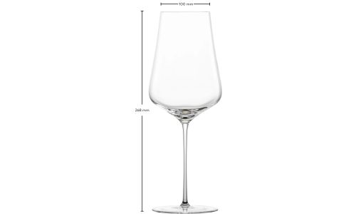 De met machinale precisie vervaardigde kelk van het 27 cm hoge Bordeaux rodewijnglas uit de serie Duo bundelt de fijnste aroma's. Dankzij de handgemaakte, filigraan steel ligt het Bordeaux glas uit de serie Duo bijzonder fijn in de hand.