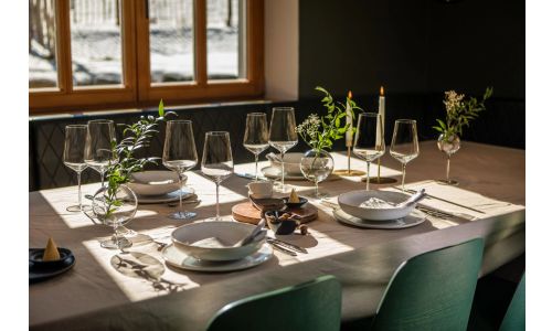 Duo combineert traditioneel handwerk met de nieuwste technologie, waardoor een unieke glaservaring ontstaat. Vooral in combinatie met het wittewijnglas Duo ontstaat er een buitengewone symfonie van genot aan de gedekte tafel.