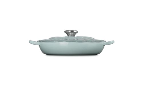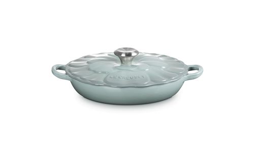 Geïnspireerd door de Franse Anemone-bloem, toont het realistische en delicate bloemsemblaadjesreliëf op het deksel van deze veelzijdige Campagnard ons uitzonderlijke vakmanschap. Lusgrepen zorgen voor een veilige grip, terwijl de Signature knop in het midden van de bloemblaadjes niet alleen een stijlvol tintje is, maar daarnaast ook ovenbestendig tot 260°C.